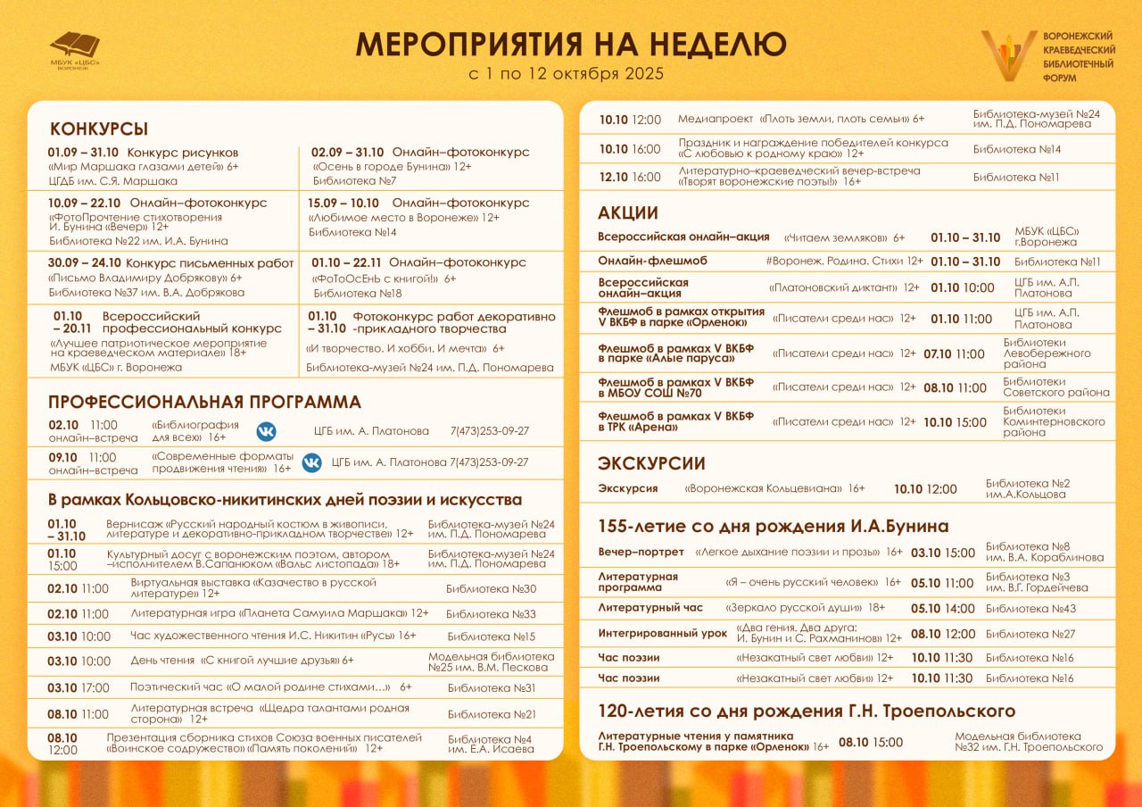 Следите за событиями Форума на сайте и в госпаблике Библиотеки Воронежа.