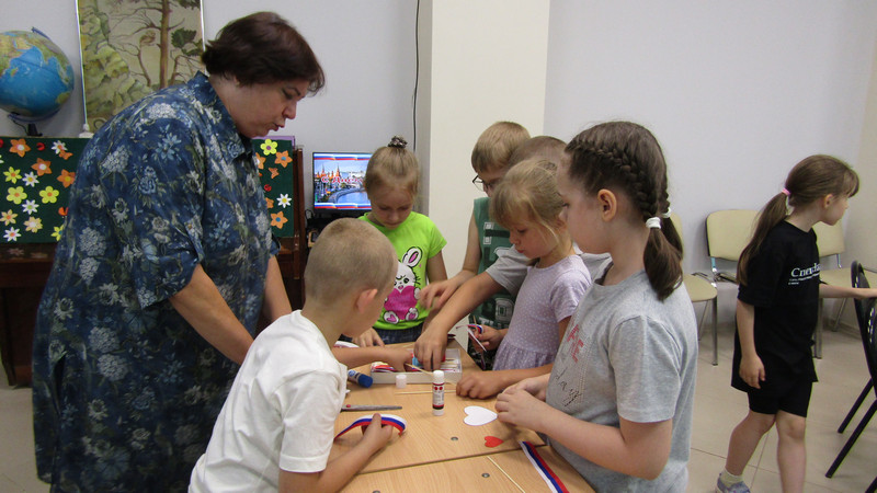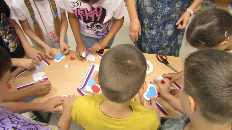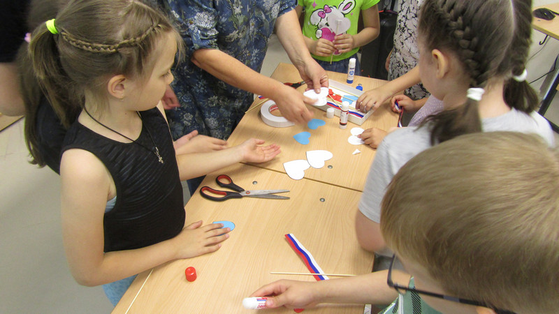 В конце патриотического часа дети своими руками сделали сердечки в цветах российского флага.