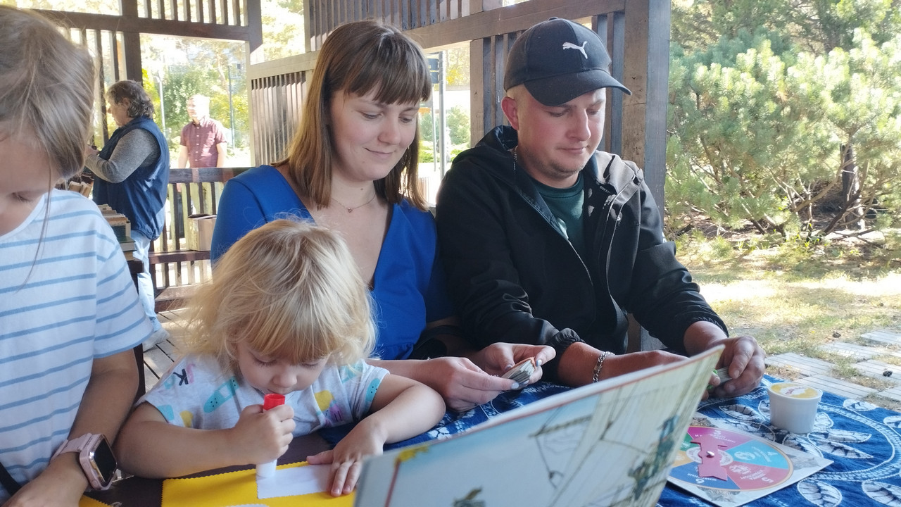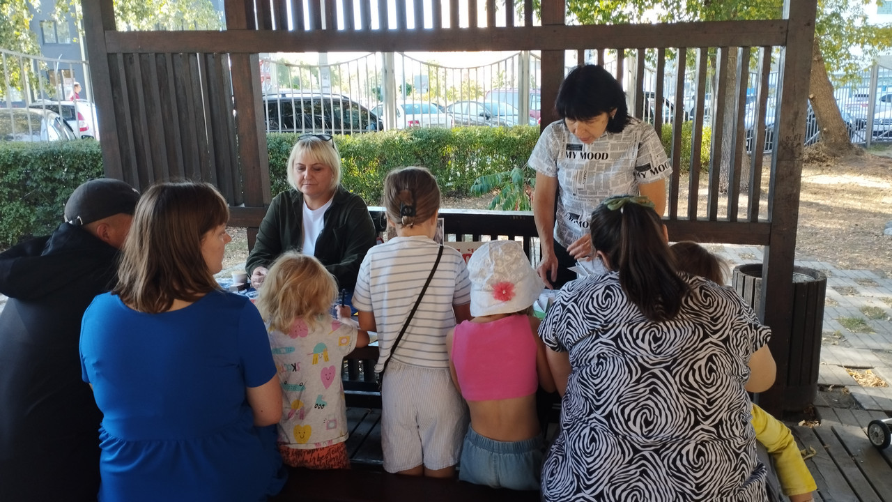 В этот осенний солнечный день желающие принимали участие в игре и отвечали на вопросы интеллектуальной викторины «Что? Где? Когда?» Игровое поле состояло из шести секторов, поэтому участникам нужно было вспомнить все о сказках и мультфильмах, о транспорте и технике, о профессиях, растениях, животных и окружающем мире.