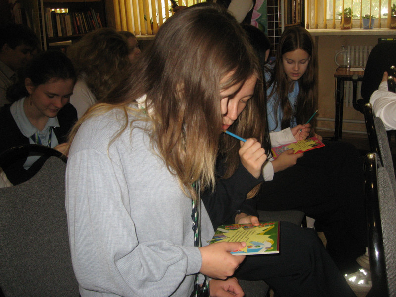 На практическом задании «Бунинский пейзаж» ребятам вручались кленовые листики с записью стихотворных отрывков, где пропущены эпитеты. Победил тот, кто подобрал эпитеты, близкие к бунинским. Школьники почувствовали себя поэтами и им это очень понравилось!