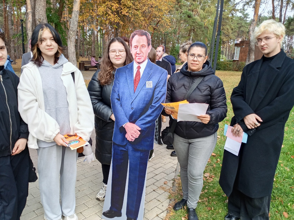 Теги: ф.18, форум20257 октября библиотека №18 приняла участие в V Воронежском краеведческом форуме. Прошел флешмоб «Писатели среди нас» Левобережного района в парке «Алые Паруса». Гостям форума было предложено сфотографироваться с ростовой фигурой знаменитого воронежского поэта Гордейчева Владимира Григорьевича. Библиотекари рассказали биографию писателя: тема войны стала одной из важнейших в творчестве Гордейчева. Военные стихи поэта проникнуты болью от осознания ужасов оккупации, но и благодарностью к тем, кто не сдался, а также любовью к стране и надеждой на победу. Участники мероприятия с удовольствием читали отрывки из произведений, узнавали название стихов и поем писателя.
