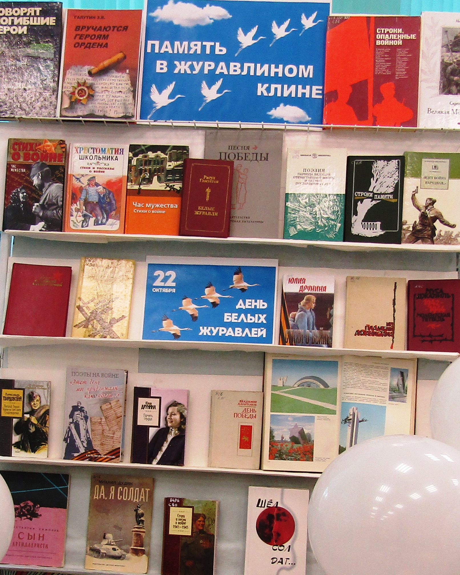 В библиотеке в этот день звучали стихи отечественных поэтов о журавлях и о тех, кто не вернулся с войны. Особое впечатление на детей произвела легендарная песня «Журавли» на стихи Расула Гамзатова – поэта, стоявшего у истоков этого памятного дня. Песня сопровождалась видеорядом, показывающим монументы павшим воинам с изображением журавлей из разных уголков мира.