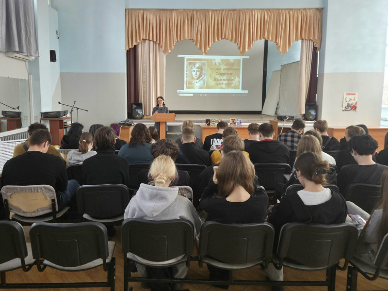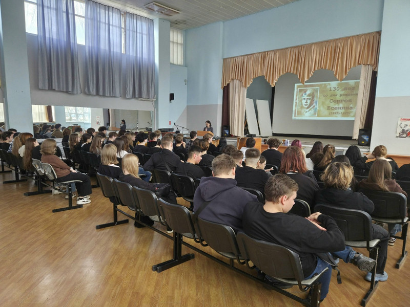 Теги: ф.2413 ноября библиотека-музей №24 им. П. Д. Пономарёва провела мероприятие, посвящённое 130-летию со дня рождения Сергея Есенина, в Воронежском техникуме пищевой и перерабатывающей промышленности.