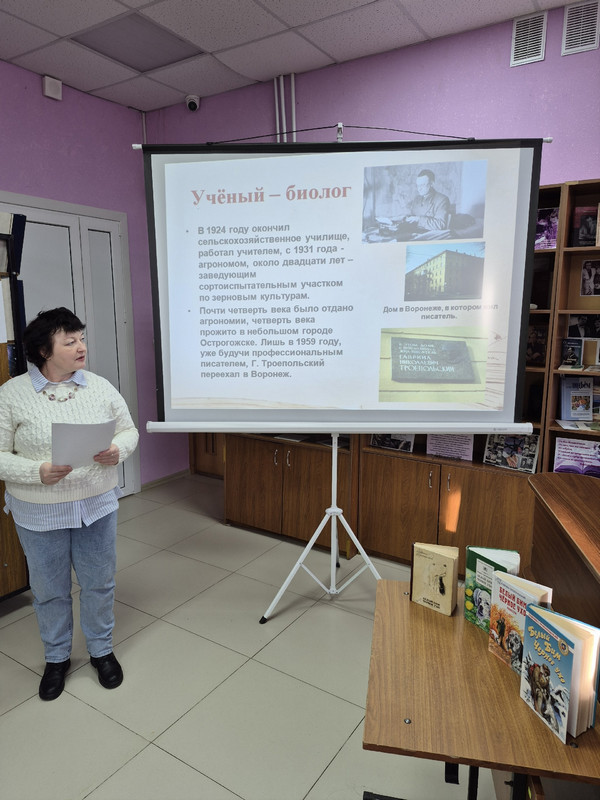 26 ноября на детском отделении библиотеки №9 им. А.В. Жигулина для детей среднего школьного возраста прошел час доброты «Уроки доброты Г. Троепольского», посвященный 120 – летнему юбилею писателя.