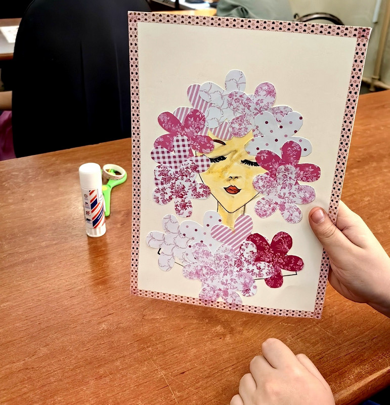 С большим удовольствием дети мастерили из нежных цветочков портреты своих любимых мам, вкладывая в каждый лепесток частичку своего сердца.