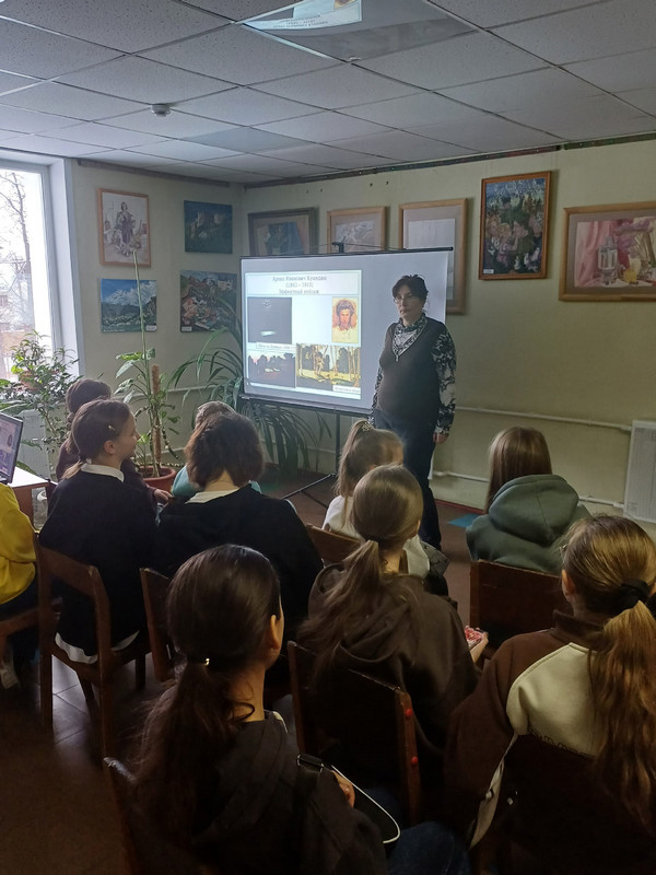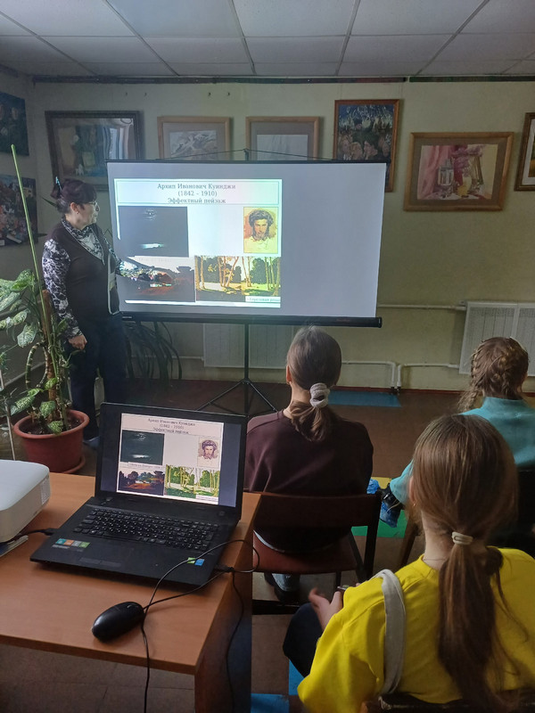 Теги: ф.822 января сотрудники библиотеки № 8 им. В.А. Кораблинова провели мероприятие для воспитанников художественного отделения детской школы искусств № 4. Оно было посвящено 185-летнему юбилею со дня рождения замечательного живописца Архипа Ивановича Куинджи. Ребята познакомились с жизнью мастера. На фоне прочих художников его судьба кажется вполне счастливой. Сын бедного сапожника смог добиться признания при жизни. Аудитория узнала, почему Куинджи считался «свободным художником». Также поговорили о движении передвижников. Украшением мероприятия стала демонстрация полотен живописца-юбиляра с рассказом об истории их создания. Ребята посмотрели картины «Лунная ночь на Днепре», «Радуга», «Украинская ночь», «Осенняя распутица», «На острове Валааме», «Ночное». Зрителей поразила уникальная техника передачи света. Кто-то предположил, что Куинджи использовал светящиеся фосфорные краски. Рассказ библиотекаря сопровождался яркой авторской презентацией. Мероприятие стало прекрасным подарком для будущих художников.