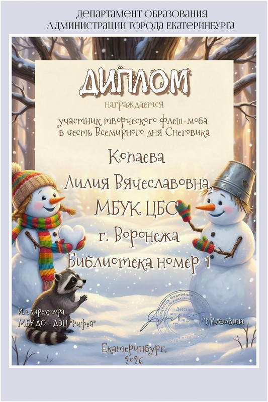 Библиотека №1 приняла участие в творческом флешмобе – фото со снеговиком.