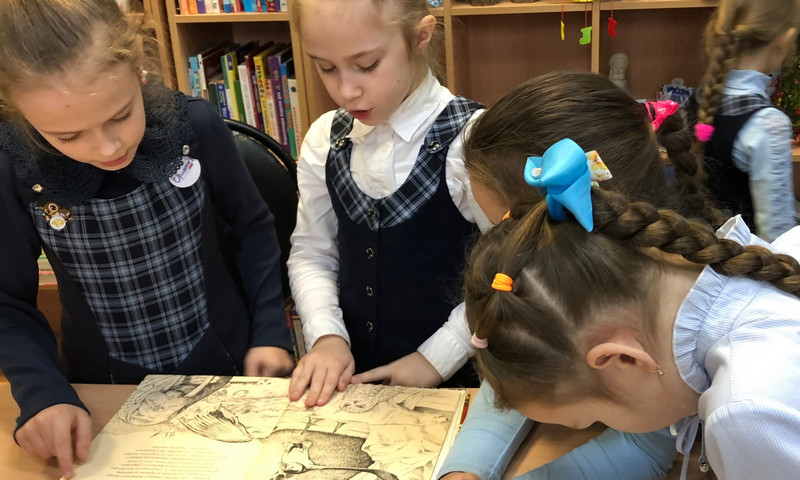 Ребята с удовольствием познакомились с книгами с выставки - былинами и сказами времен Древней Руси, сборниками сказок мира, нестареющей классикой. Их заинтересовали и произведения современных авторов, например, Е. Матюшкиной и О. Роя, - о джингликах и влипсиках - фантастических маленьких человечках, которые учат дружбе, взаимовыручке и оптимизму. Некоторые произведения с выставки юные читатели взяли на дом: им не терпелось отправиться в путешествие по Стране сказок, чтобы познакомиться с добрыми феями и волшебниками.