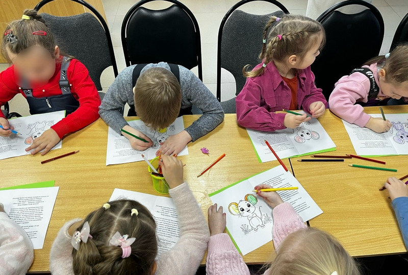 Завершилась встреча творческой частью: юные читатели изготовили книжки, раскрасили иллюстрации с мышатами и прослушали поучительную сказку Нины Павловой «Мышонок заблудился».