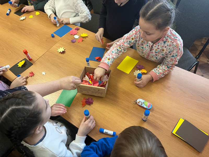 В преддверии Международного женского дня 8 Марта, детям было предложено создать праздничную открытку для любимых мам и бабушек из цветной бумаги и картона.
