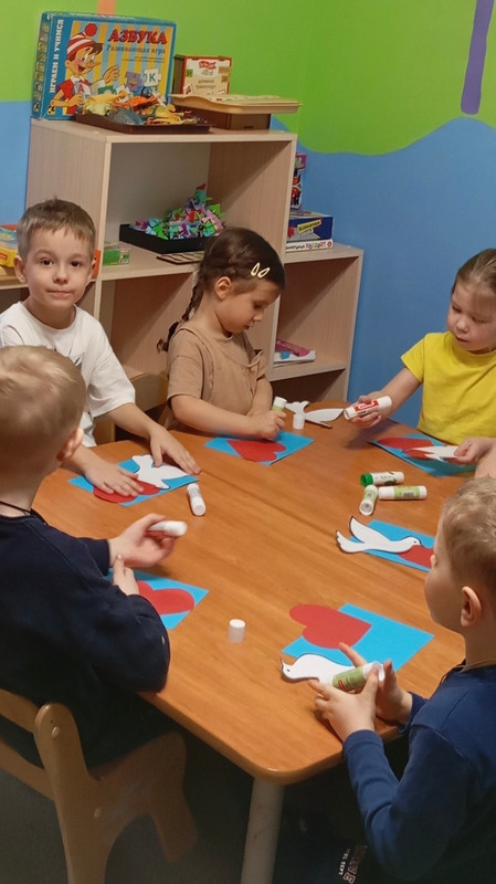На встрече с дошкольниками библиотекарь рассказала о значении голубя в истории, появлении эмблемы, традиции выпускать белых голубей. Она прочитала несколько стихотворений о мире, дружбе, детстве, познакомила с подборкой книг, герои которых приносят пользу, проявляют заботу и теплое отношение к окружающим, а затем показала, как с помощью картона, бумаги и клея сделать прекрасную птицу. Мероприятие получилось душевым, напомнило ребятам о важности мира и добра.