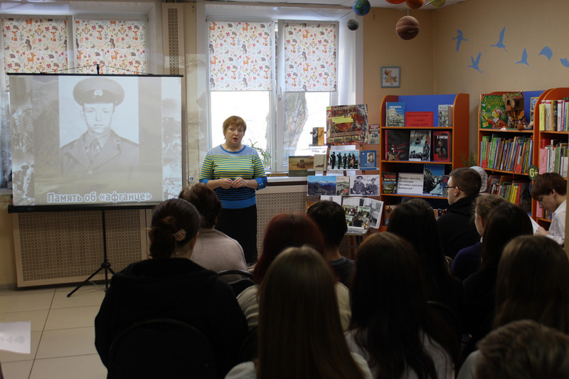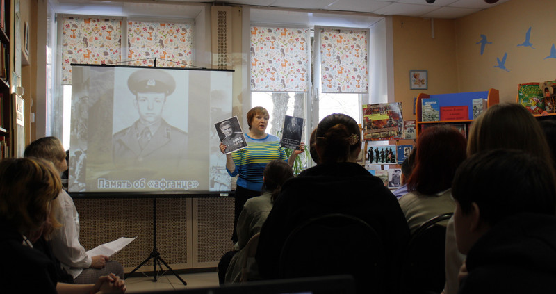 13 марта в библиотеке №4 имени Егора Исаева прошел вечер воспоминаний "Память об "афганце". Снайпер-разведчик Юрий Васильев". На встречу со школьниками были приглашены: Субач Игорь Викторович - подполковник в отставке, председатель Коминтерновского совета ветеранов войны, труда, вооруженных сил и правоохранительных органов; учитель истории, руководитель школьного музея МБОУ СОШ №29 Московкина Валентина Денисовна и ученики-из актива музея; советник по воспитательной работе ГБПОУ ВО «ВГПТК» Орлова Екатерина Викторовна. Встреча была посвящена герою, погибшему в Республике Афганистан. В этом году, 15 марта, ему должно было исполниться 60 лет. Но он погиб 19-летним...Награжден орденом Красной Звезды (посмертно).
