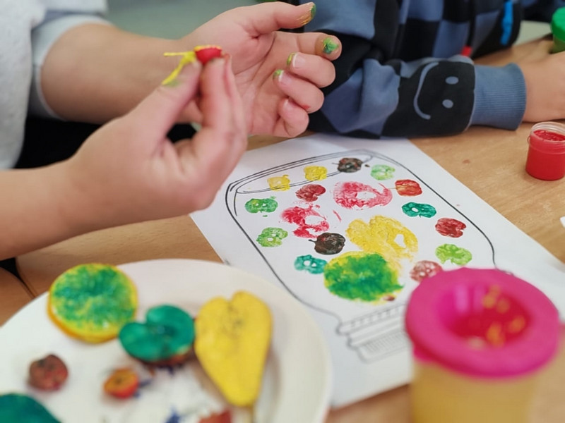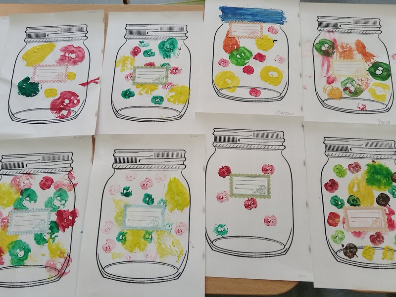 Во второй части мероприятия прошла творческая мастерская «Бабушкин компот» - совместная работа, объединившая воспитанников, педагогов и библиотекарей. Название выбрано неслучайно: компот у многих ассоциируется с домашним теплом, натуральными фруктами и семейными традициями. Дети создавали макеты баночек с компотом в технике стемпинг и при помощи натуральных материалов: сухофрукты, веточки, высушенные дольки яблока, груши и лимона - всё это стало частью композиции.