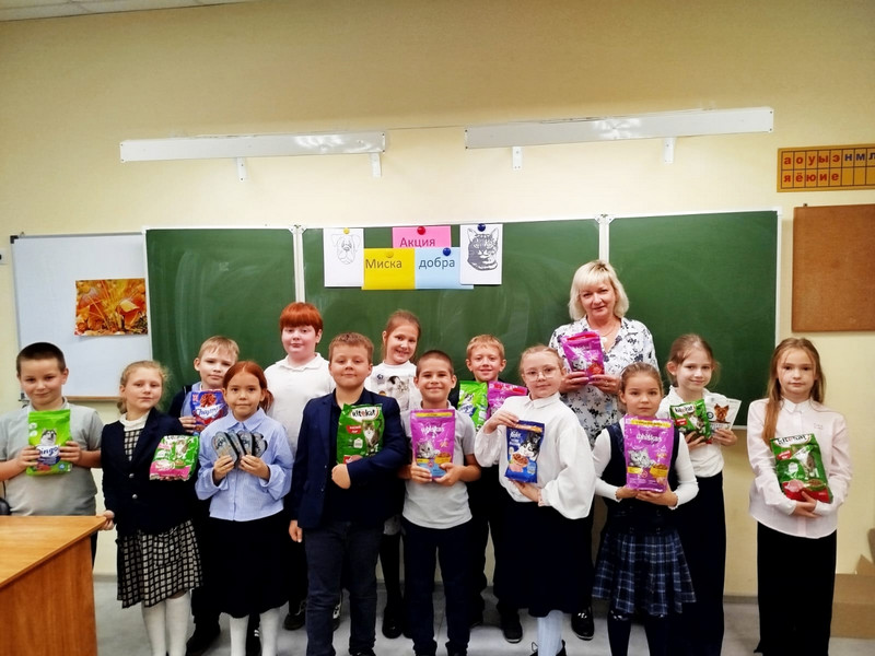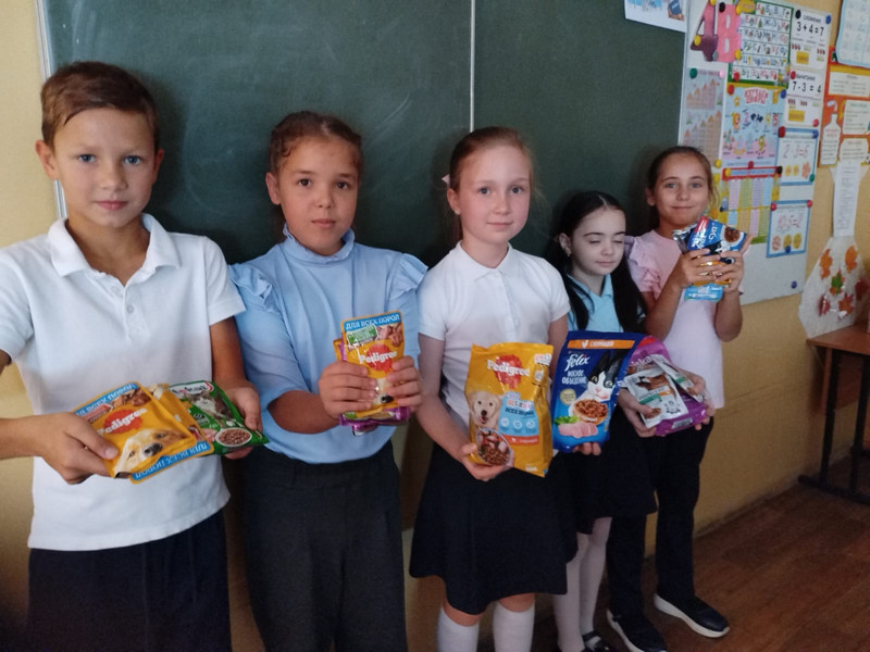 Все желающие могли до 26 сентября принести по пакетику сухого или влажного корма в свою школу для передачи организаторам акции.