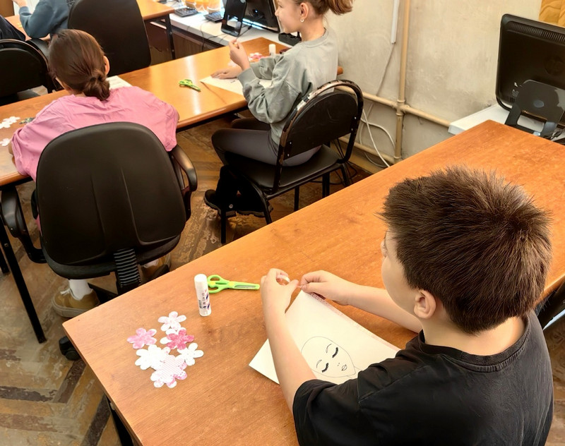С большим удовольствием дети мастерили из нежных цветочков портреты своих любимых мам, вкладывая в каждый лепесток частичку своего сердца.