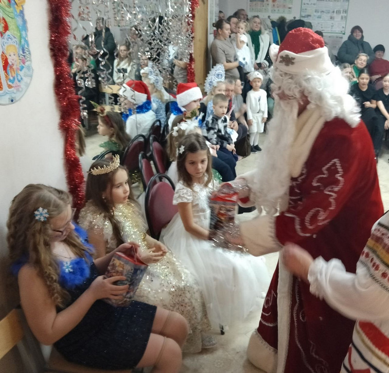 А дружный, традиционный хоровод вокруг новогодней елочки сказочных литературных героев позволил каждому ребёнку показать свой новогодний костюм, рассказать о нем Бабушке - загадушке и получить подарок.