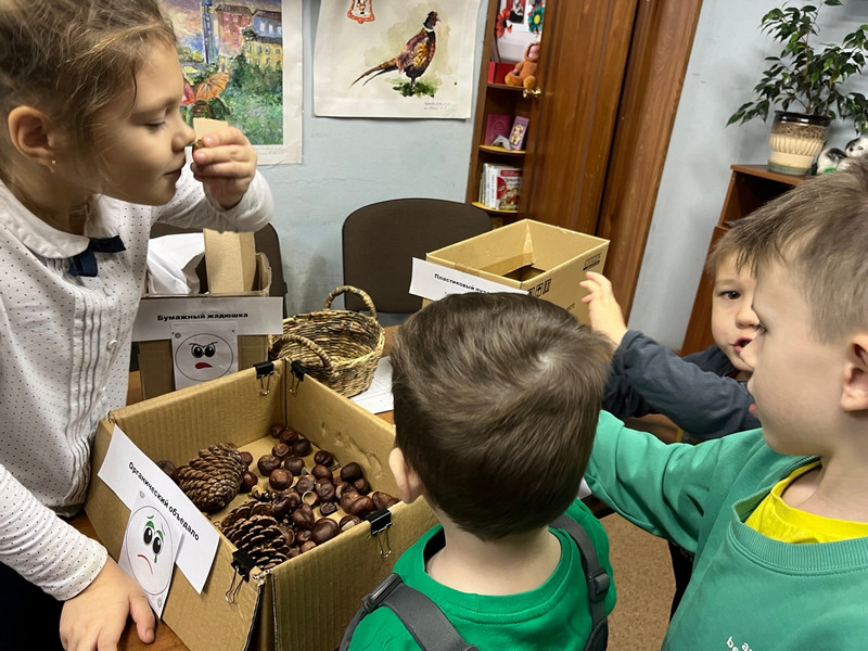 Программа включала чтение экологической сказки, практическую игру по сортировке мусора, весёлую подвижную игру и творческий мастер-класс.