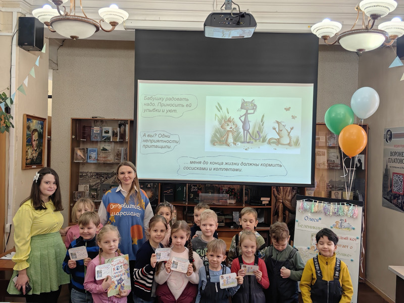 Олеся Вячеславовна провела несколько увлекательных активностей с детьми, рассказала интересные факты о героях книги и прочитала детям фрагмент рассказа-продолжения истории о Чёрном и Рыжем котах.