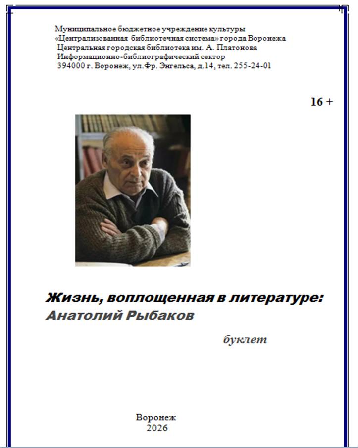 14 января отмечается 115 лет со дня рождения писателя. Предлагаем вашему вниманию буклет «Жизнь, воплощенная в литературе: Анатолий Рыбаков»