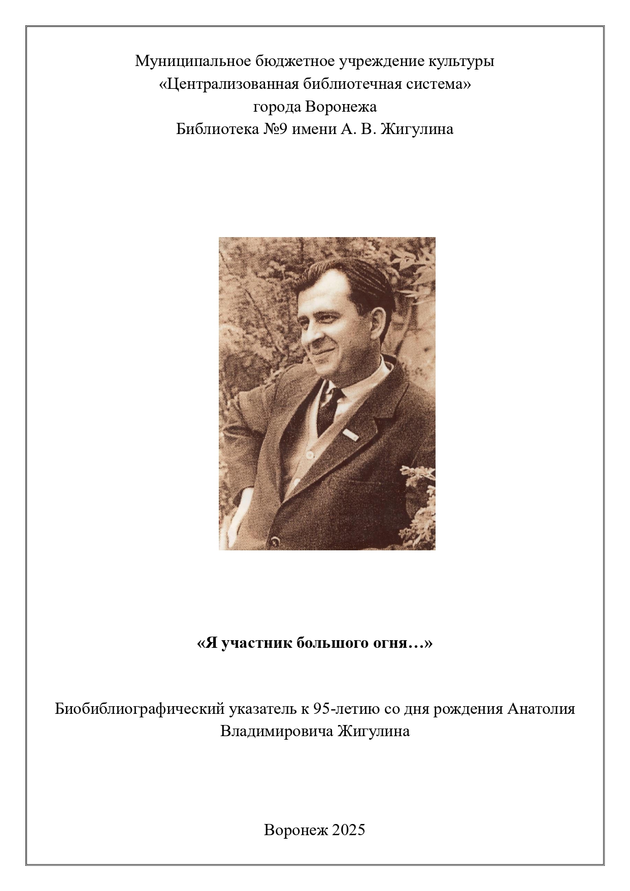 В 2025 году отмечается 95-летие со дня рождения замечательного воронежского поэта и писателя Анатолия Владимировича Жигулина.