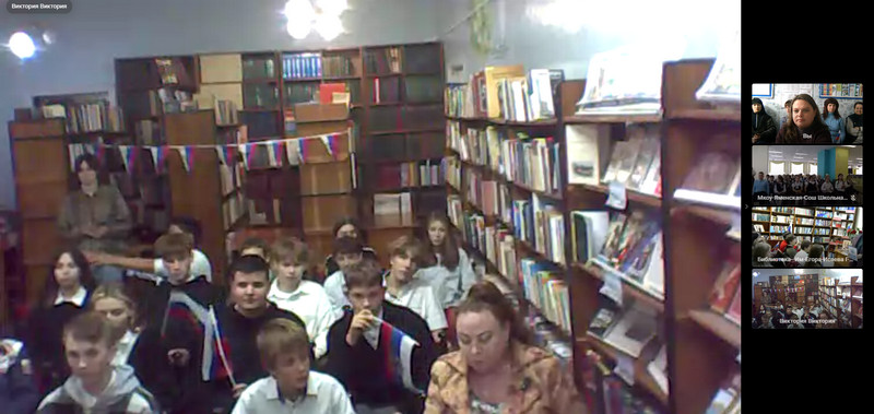 Теги: ф.429 сентября библиотека №4 имени Е.А. Исаева организовала и провела видео-марафон «Одна страна. Одна семья. Одна Россия!». Встреча прошла в формате телемоста совместно с Центральной городской библиотекой МБУ "ЦБС города Торез" (ДНР), библиотекой №3 им. Н. Островского города Керчи и МКОУ Яменская СОШ Рамонского района Воронежской области.