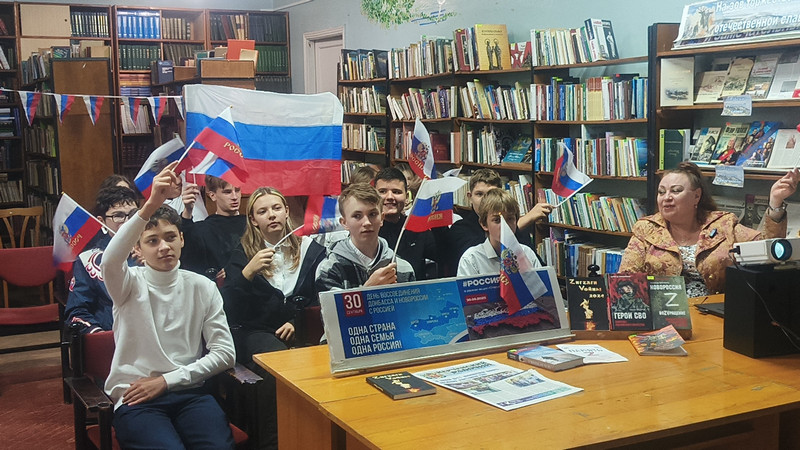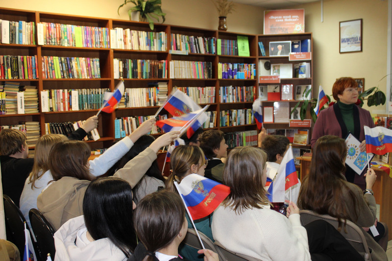 Атмосфера патриотизма витала в воздухе, пронизывая каждый уголок библиотеки, от украшенного триколорами зала до тематических выставок.