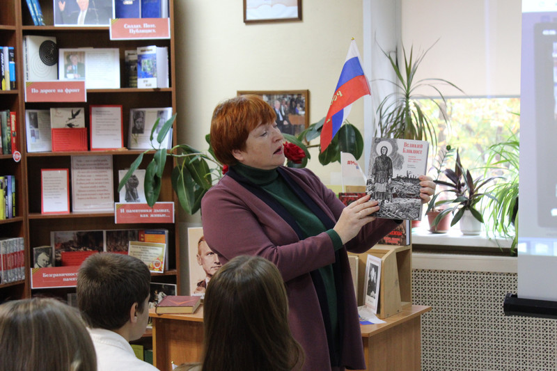 Заведующая библиотекой № 4 им. Е. Исаева Меркулова Е.А провела обзор художественных книг классиков русской литературы посвященных Донбассу. Были представлены книги : А. Куприна «Молох», В. Вересаева «Без дороги», А. Серафимовича «На заводе», Б. Горбатова «Донбасс», К. Паустовского «Гостиница «Великобритания», А. Фадеева «Молодая гвардия». Библиотекарь отметила, что каждое произведение позволяет читателям увидеть Донбасс глазами выдающихся писателей, проникнуться атмосферой шахтерского края и почувствовать его неповторимый дух. Также была представлена книга воронежского писателя, адвоката Михаила Федорова «Герои СВО».