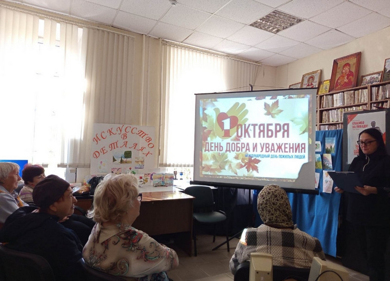 Теги: ф.9К Международному дню пожилых людей Библиотека №9 им. А.В.Жигулина представила в учреждении социальной защиты для граждан пожилого возраста и инвалидов мероприятие «Пусть будет тёплой осень жизни».