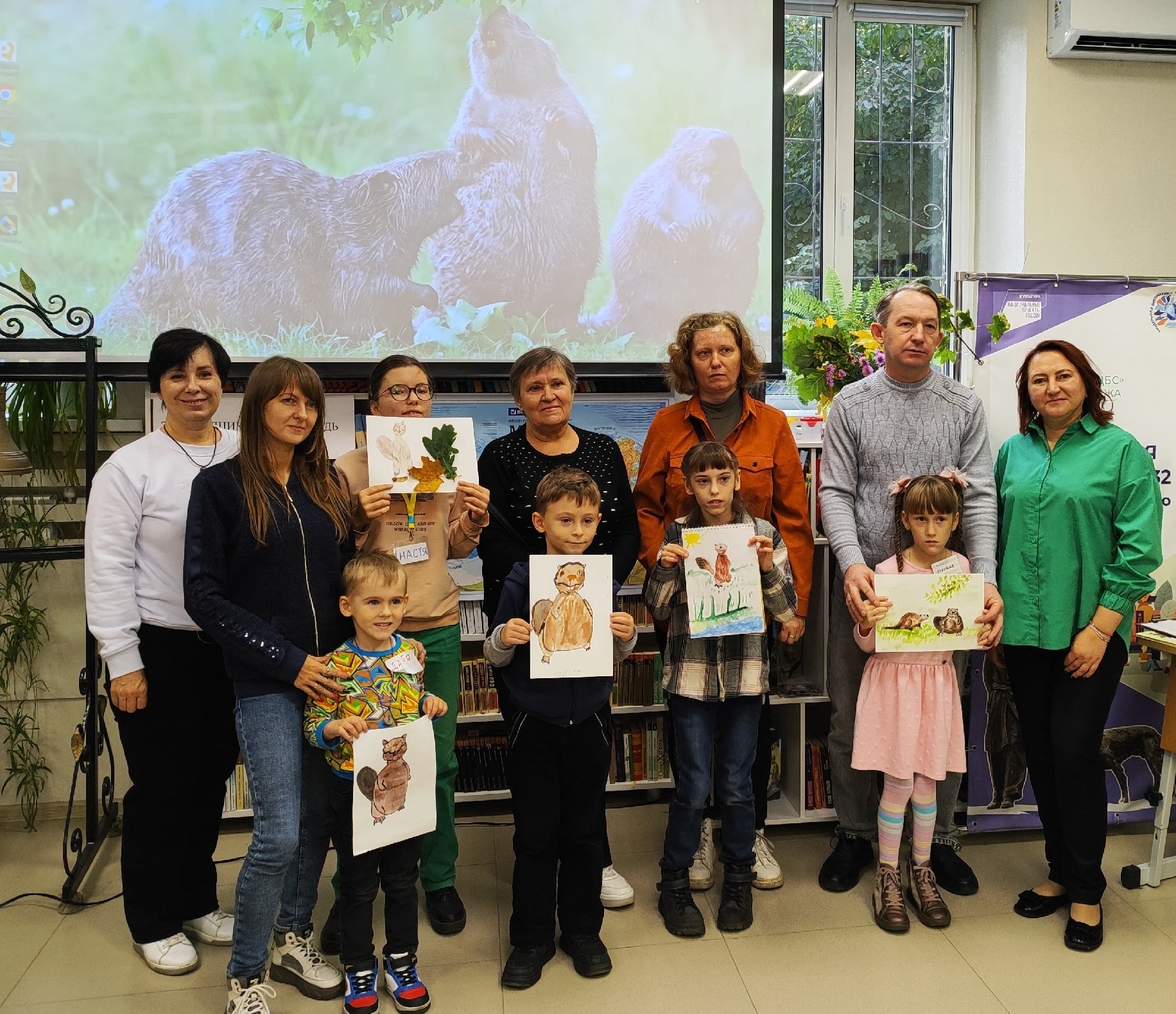Ребята и их родители с удовольствием познакомились с новыми словами, которые тут же с легкостью запомнили, изучили жизнь бобра по красочным, написанным доступным языком книгам, ответили на вопросы викторин, вместе построили уютные хатки для бобрят, определили, к каким деревьям относятся какие листья и поговорили об осени. Закрепить пройденный материал помогло творческое задание – ребята нарисовали воронежского бобра под звуки классической музыки, создававшей хорошее настроение.