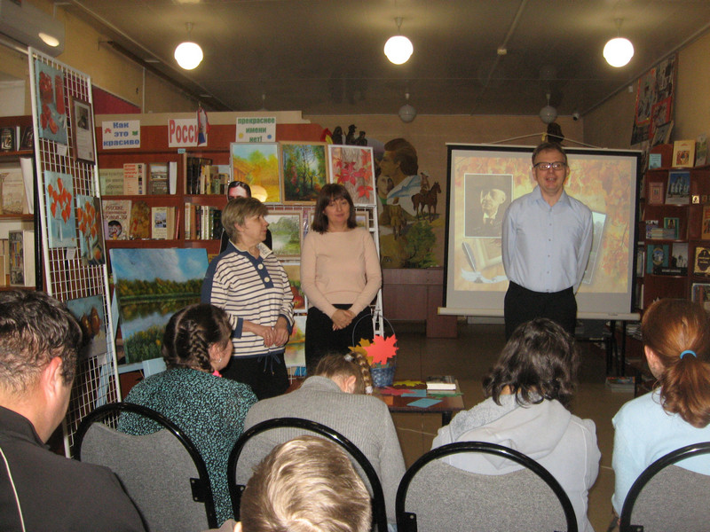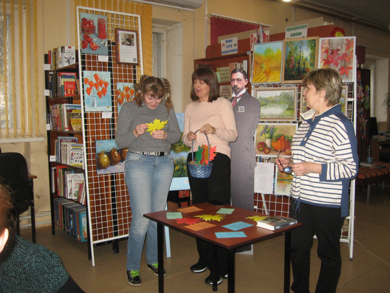 Гости внимательно слушали и сами принимали активное участие: точно отвечали на вопросы о жизни и творчестве писателя, выбирая яркие листочки из осеннего Бунинского букета. Все молодцы!