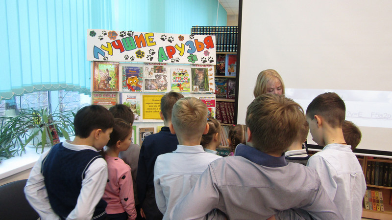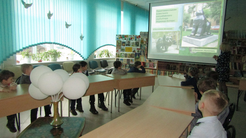 истории эти кошки?» и «Книжные собачки». Познакомились с памятниками, посвящёнными кошкам и собакам. Школьники увидели удивительных домашних животных в разделе «Кот-парад» и «Пес-парад», а также видеоролик о забавных домашних питомцах.