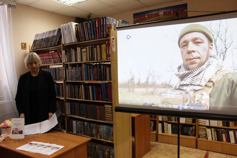 Чтение стихов автором перемежалось с комментариями о героях и простых людях, попавших в горнило СВО. Также, в самом начале встречи, прозвучали трогательные строки, посвященные памяти мамы, которая в детстве была свидетельницей голода 1932-1933 годов. Затем были представлены видео-сюжет и стихотворение автора "Не встанет русский на колени" о командире разведывательно-штурмового отряда спецназа «Ахмат» Алексее Пряжникове (позывной «Малой») и его отважных бойцах, которые в течение пяти суток были заблокированы в здании в селе Белогоровка в окружении врага. Они вызвали огонь на себя, смогли выйти всем личным составом пробираясь полтора километра к своим, держали в руках гранаты с выдернутой чекой. Звучали стихи "Окопная свеча", "Поток"(о событиях военной операции, проходившей 8 марта 2025 года на территории частично оккупированной Курской области. В ходе операции российские военные вышли в тыл украинской армии по газовой трубе магистрального газопровода Уренгой — Помары — Ужгород.); "Своих не бросаем", "Уходят вдаль любимые мальчишки".