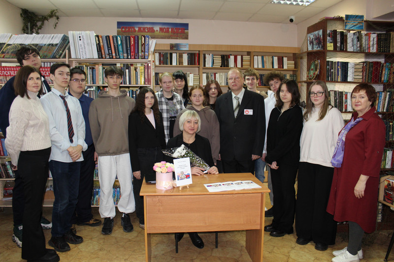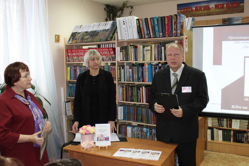 Библиотекарь сказала несколько слов о своих впечатлениях после прочтения сборника, зачитала понравившиеся стихи. Затем гостя встречи представил председатель правления ВГОО "Союз писателей "Воинское содружество", член-корреспондент МОО "Петровская академия наук и искусств", кандидат педагогических наук Сергей Николаевич Кашкин.