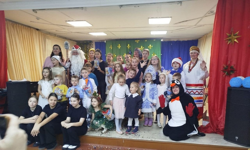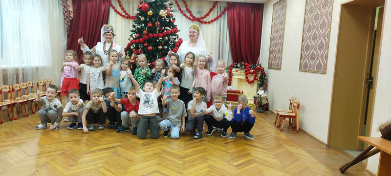 А дружный, традиционный хоровод вокруг новогодней елочки сказочных литературных героев позволил каждому ребёнку показать свой новогодний костюм, рассказать о нем Бабушке - загадушке и получить подарок.