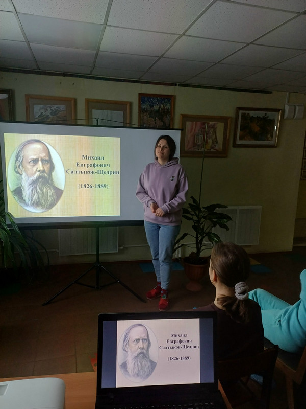 Теги: ф.828 января сотрудники библиотеки № 8 им. В.А. Кораблинова провели мероприятие для воспитанников Детской школы искусств № 4. Литературный час был посвящен 200-летнему юбилею со дня рождения выдающегося писателя-сатирика Михаила Евграфовича Салтыкова-Щедрина. Ребята с интересом познакомились с его биографией. Их весьма удивил тот факт, что начальное образование писатель получил дома. Узнали ребята и то, за какие провинности Михаил Евграфович был сослан в Вятку.