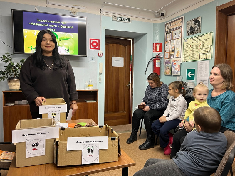 Программа включала чтение экологической сказки, практическую игру по сортировке мусора, весёлую подвижную игру и творческий мастер-класс.