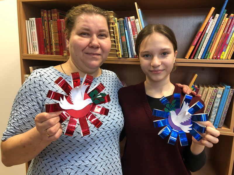 Библиотекарь объяснила, чем отличаются понятия «экстремизм» и «терроризм», какая ответственность предполагается за участие в экстремистской и террористической деятельности, предостерегла от попадания под влияние экстремистской пропаганды в социальных сетях и других источниках. Она выдала памятку, содержащую алгоритм действия при угрозе или проведении террористического акта, а затем предложила выполнить тематическую поделку из бумаги с изображением белого голубя - символа отказа от насилия, дружеского общения и солидарности в борьбе за мир.