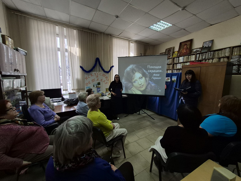 Сотрудники библиотеки с помощью презентации рассказали о жизни и творчестве певицы, сыгравшей значимую роль в развитии отечественной эстрады, что прожила она недолгую, но яркую жизнь, наполненную не только многогранным творчеством, счастливой семейной жизни, но и трагическими событиями. Мероприятие сопровождалось показом видеофрагментами из жизни Анны Герман. Звучали записи песен в ее исполнении: «Танцующие Эвридики», «Надежда», «Когда цвели сады», «Эхо любви», «Аве Мария», «Опустела без тебя Земля», «А он мне нравится», «Белая черемуха» и многие другие.