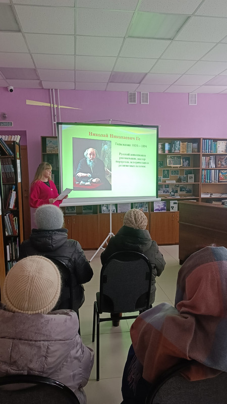 25 февраля в библиотеке №9 им. А. Жигулина прошел час искусства «Художник драмы и духа», посвященный 195-летию русского художника Николая Николаевича Ге.