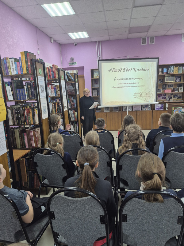19 марта 2026 года в библиотеке №9 им. А.В. Жигулина прошел библиотечный урок «Справочная литература» для учащихся начальной школы. Мероприятие было посвящено знакомству со справочной литературой: энциклопедиями, словарями, справочниками, обучению навыкам пользования ими. Урок проходил в форме беседы с использованием презентации. Библиограф познакомила ребят с фондом справочной литературы библиотеки, рассказала, чем словари отличаются от справочников и о том, как ими пользоваться. Ребятам продемонстрировали различные серии энциклопедий: «Я познаю мир», «Все обо всем», «Сто великих», «Большая Российская Энциклопедия». В этих книгах можно подробно узнать почти обо всем.