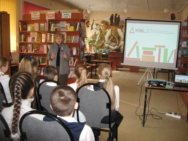 6 апреля в библиотеке № 22 им. И. А. Бунина прошёл библиотечный урок «НЭБ. Дети – это просто».