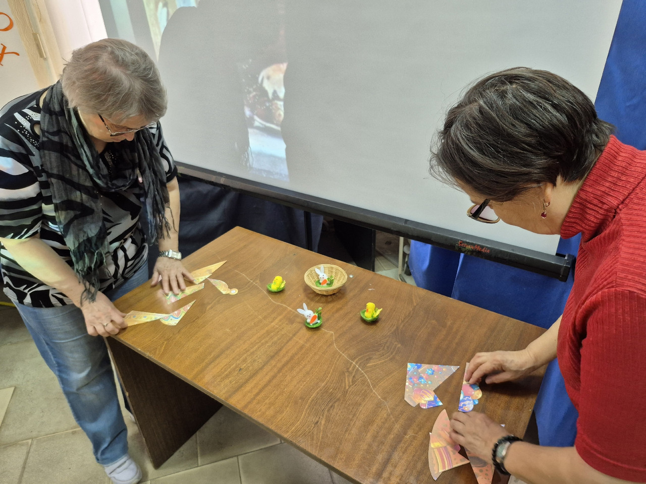 Во второй части программы гости охотно участвовали в конкурсе «Угадай» где все задания были связаны с пасхальной тематикой, а также участвовали в играх, викторинах, и мастер-классе «Роспись пасхальных яиц», используя яичко на подставке, сделанное из дерева. Вечер был наполнен улыбками и радостью.