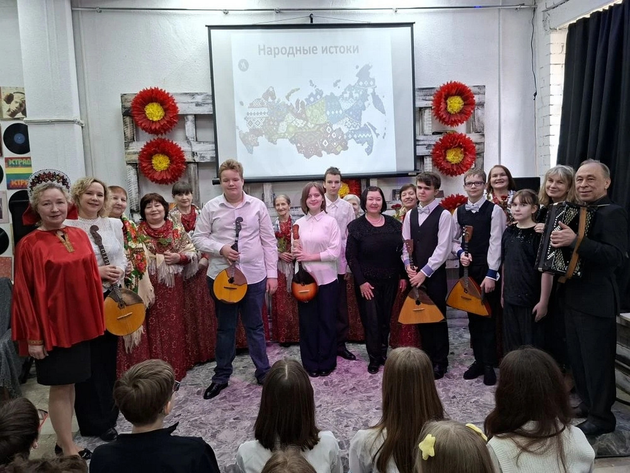 2026 год объявлен по решению президента Российской Федерации Владимира Владимировича Путина Годом единства народов России. Цель этого года — укрепить дружбу и взаимопонимание между народами, проживающими на территории нашей страны, а также сохранить самобытность и традиции всех народов. Библиотека №27, ДШИ №10 и «Арт - Центр» МБУК «ЦКС» организовали и провели музыкальный вечер «Народные истоки», на котором присутствовали учащиеся седьмых классов МБОУ СОШ №72 им.Ю.В.Лукьянчикова и читатели библиотеки №27. Ведущий мероприятия, заведующий библиотекой №27 Котова Лариса Анатольевна, рассказала об истоках русской народной музыки, её роли и значении как основы культурного наследия страны , познакомила с историей песен «Калинка», «Коробейники». «Вдоль по Питерской», «Уж ты, Нива моя», которые замечательно исполнили юные музыканты ДШИ №10. Также вниманию присутствующих было представлено музыкальное творчество таких народов, как татары, белорусы, украинцы. Солисты ансамбля «Ещё не вечер» зажигательно и ярко исполнили песни «Рязанскую величальную» и «Деревенька живёт». В зале создалась атмосфера единства и хорошего настроения, зрители активно подпевали, услышав знакомые мелодии, бурно аплодировали каждому выступающему. Народная музыка объединила публику разных возрастов и культур.