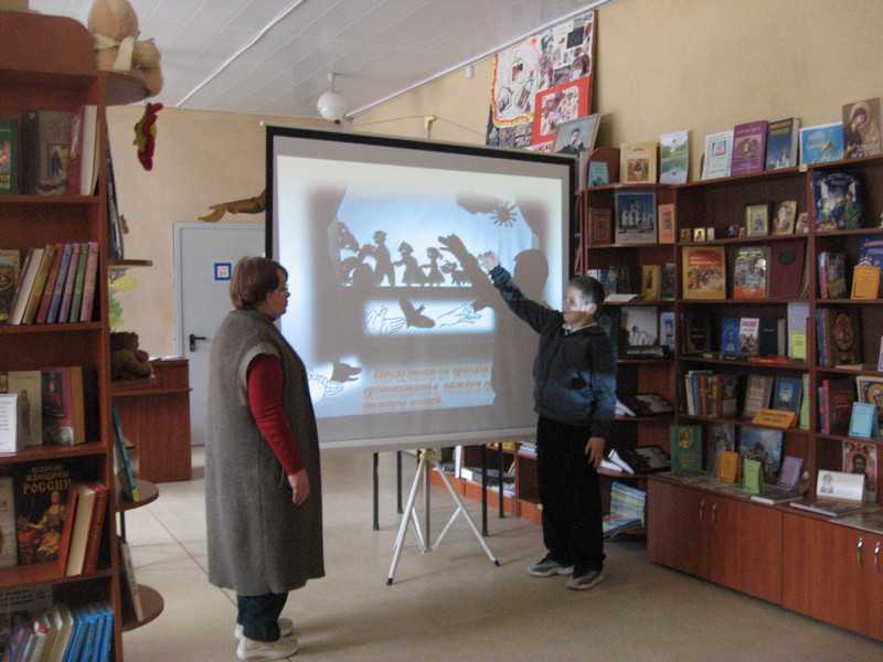 С помощью красочной презентации дети узнали о людях, которые создают чудо, имя которому – Театр. Особое место на празднике было уделено театру кукол. Дети познакомились с легендами о возникновении этого вида искусства, с театром Сергея Образцова, увидели отрывок его «Необыкновенного концерта». Познакомились и с Воронежским государственным театром кукол им. В.А. Вольховского, и с библиотечным кукольным театром «Книжкины друзья». Мальчишки и девчонки увидели кукол: перчаточных, марионеток, тростевых и т.д.