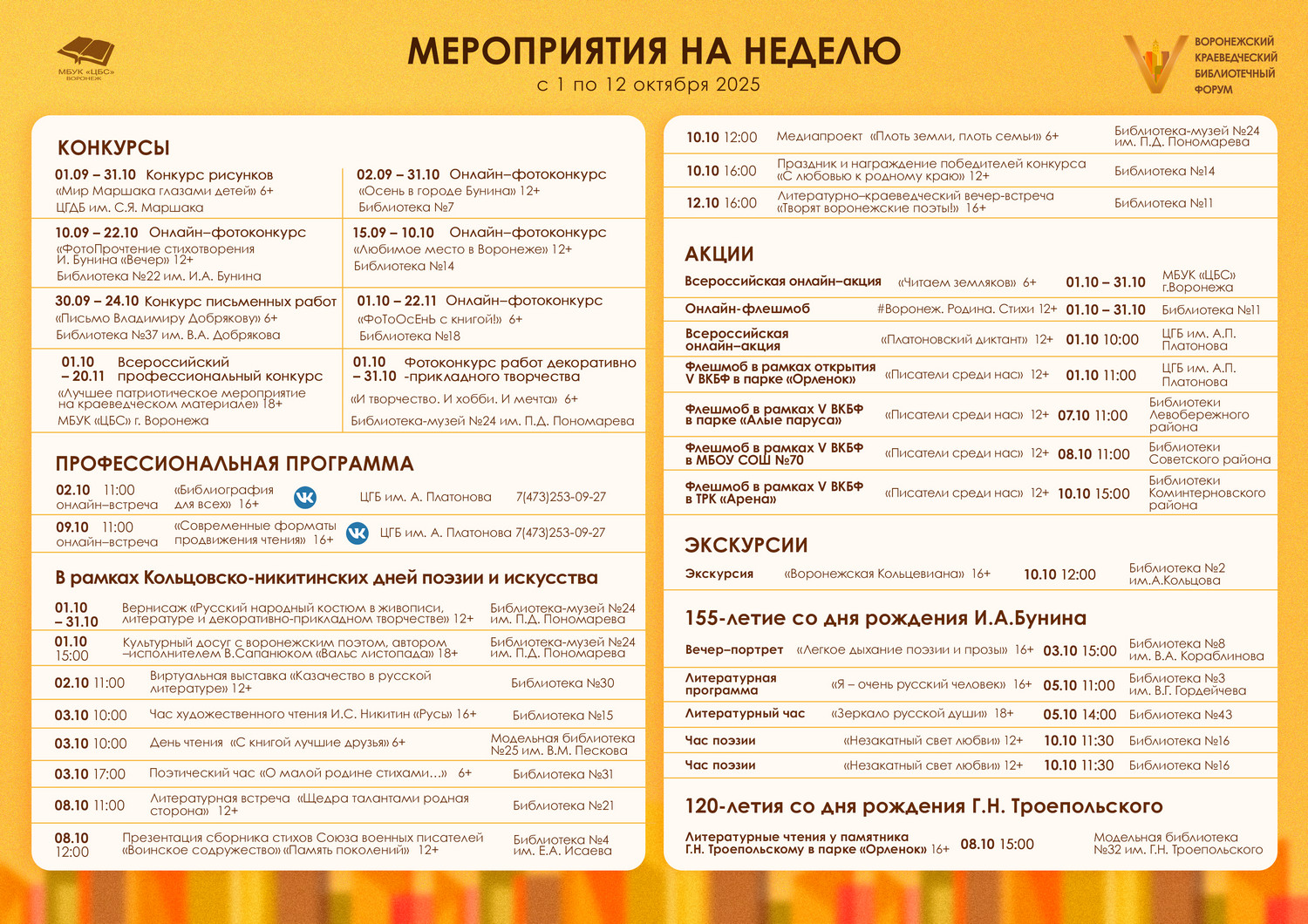 Следите за событиями Форума на сайте и в госпаблике Библиотеки Воронежа.