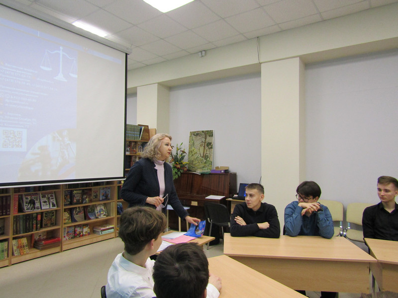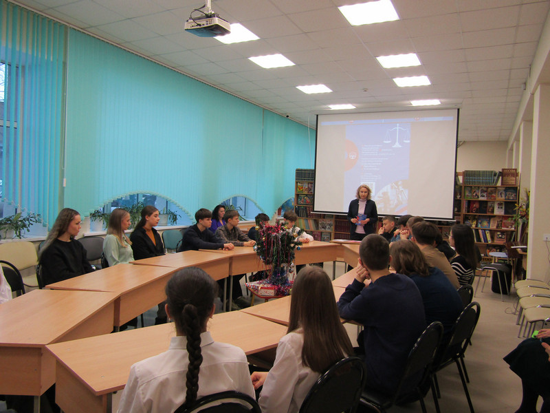 В Центральной городской детской библиотеке им.С.Я. Маршака состоялась встреча с доцентом кафедры гуманитарных и социально-экономических дисциплин Российского государственного университета правосудия, кандидатом педагогических наук Кавнатской Еленой Вячеславовной, которая познакомила старшеклассников с работой университета, обучающего студентов правовым дисциплинам и готовящего специалистов в области юриспруденции.
