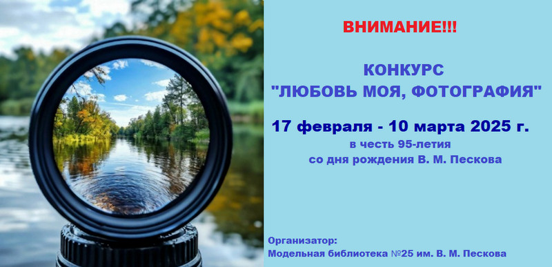 Теги: ф.25, конкурсы, модельная библиотекаВ этом году исполняется 95 лет со дня рождения известного журналиста и защитника природы, нашего земляка Василия Михайловича Пескова. Его фотографии остаются для всех ориентиром любви к природе, призывая беречь и ценить самое прекрасное богатство – нашу землю!
