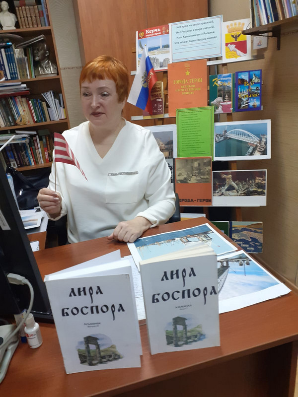 Каждый из участников встречи рассказал и представил свои поделки-цветы, праздничные стихи. Присутствующим напомнили о вкладе воронежцев в строительство Крымского моста - его белоснежные арки были произведены на предприятии "Воронежстальмост", была представлена книга "Наш Крым" и проект "Прикоснись к звуку", присутствующие услышали информацию о страноведческом направлении в работе модельной библиотеки, был представлен путеводитель по Крыму и книга о городе-герое Севастополе. Все вместе мы поздравили крымчан с памятным событием. Поприветствовали Библиотеку- филиал № 3 им. Н. А. Островского города Керчи!