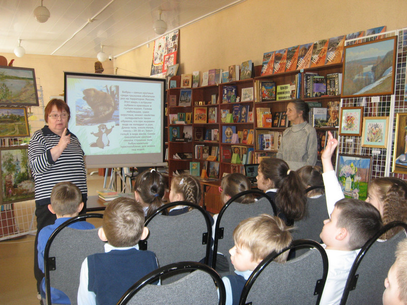 Дети услышали рассказ о замечательных, очень полезных животных - бобрах, познакомились с книгами о них: Г.Снегирёва «Бобровая хатка», Серая Сова «Саджо и её бобры», Н. Сладкова, Е. Чарушина «На пруде». Красочная презентация «Жил-был бобр» проиллюстрировала не только рассказ библиотекаря о бобрах, бобрятах и бобрихах, но и о Воронежском заповеднике, его истории, уникальной деятельности по спасению бобров. Мальчишки и девчонки с восхищением смотрели на красивые заповедные пейзажи, мечтая совершить не виртуальное, а реальное путешествие в это сказочное место.