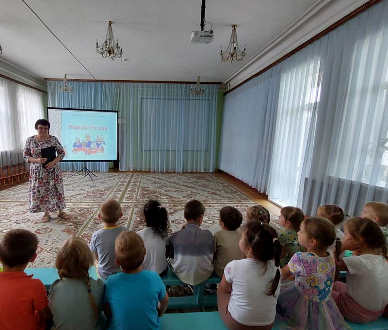 Ребята узнали о таких народах нашей страны как башкиры, калмыки, татары, буряты, чеченцы, ханты, чукчи и другие. Живой интерес вызвал просмотр видеозаписей: русская народная песня «Во поле береза стояла», «Татарская народная плясовая», Чеченский народный танец «Лезгинка» и «Якутский хомус».